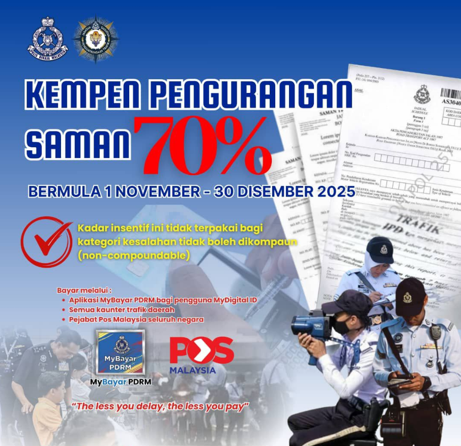 Diskaun Saman Trafik 70% Bermula 1 November Hingga 30 Disember 2025