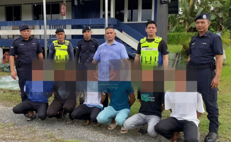 Bertindak atas laporan tersebut, polis melancarkan operasi di kawasan kampung pada Isnin, jam 4.05 petang, yang membawa kepada penahanan enam suspek tempatan berusia antara 16 hingga 21 tahun.