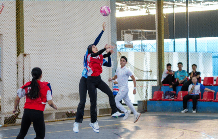 Acara bola jaring berlangsung sengit dengan formasi tersusun, hantaran pantas dan jeritan semangat yang bergema di tepi padang. Setiap pasukan tampil dengan strategi tersendiri bagi memburu kemenangan dan kebanggaan daerah masing-masing.