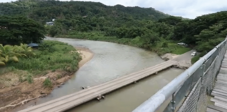 Dua jambatan berdiri — satu peninggalan kolonial, satu hasil tangan rakyat sendiri.